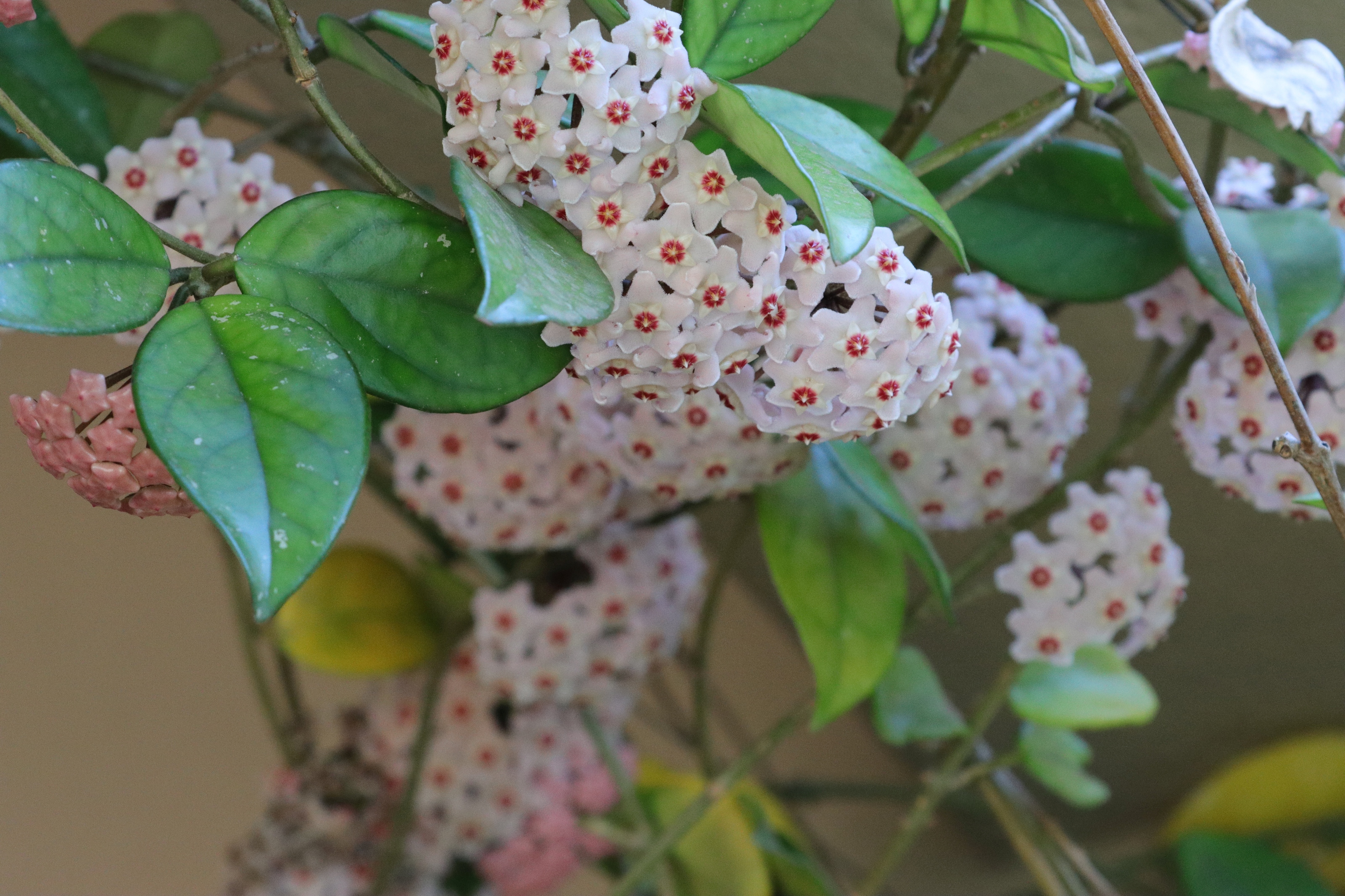 My granny grew what we knew as "wasblommetjies" (wax flowers) on her veranda. I only knew the one variety, and was never even aware that there were others. The variety that she had is called Hoya carnosa and is common in South Africa. When I became aware of the diversity in this species I tried finding other varieties, but had no luck locally. I ended up importing a few rooted cuttings from the Netherlands without too much hassle, and they've been growing happily ever since. Since then other people started importing and collecting these plants, so cuttings of many varieties are readily available.