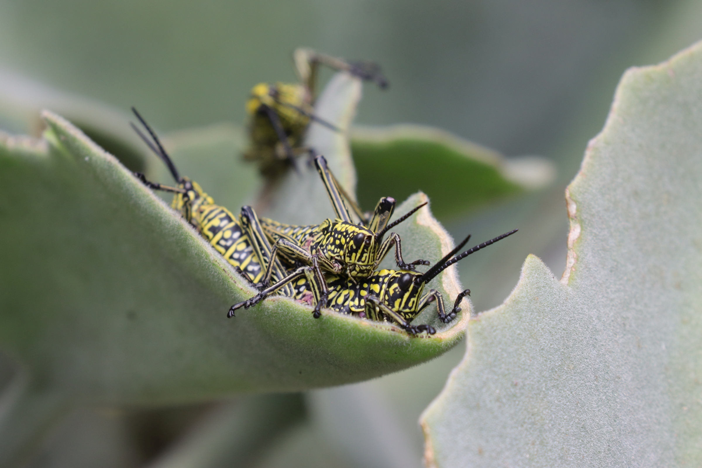 Images of bugs. Most of these were taken using the 100-400mm Canon lens rather than the 100mm macro (or the wide 10-18mm that has macro). I find it extremely difficult to get close enough with the macro lens since the bugs tend to go away quickly. Using my remote control will probably do the trick in solving that issue, but there are a number of other issues with the macro lens. Biggest of these is the fact that you have to use a very high f-stop number to get any depth-of-field. This in turn requires you to compensate with longer exposures which does not work well with fast-moving subjects. Bumping up the ISO can only go so far before the graininess becomes a problem. Since this is not a competition I took the easy way out - use the long lense, and pick bigger subjects!